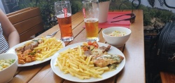 Zostało zamówione mięso z ziemniakami, po czym dowiedzieliśmy się że nie ma ziemniaków, po czym do dania dostaliśmy frytki, czyli jasno wynika że frytki podają mrożone, tragiczny wybór jeśli chodzi o ryby, końcówka sezonu był dostępny tylko dorsz, piwo z nalewka przeterminowane, jeśli ktoś chce tam się wybrać na obiad to serdecznie uprzedzam że na wieczór będzie miał niezwykle rewolucje żołądkowe, m.in niestrawność, wzdety brzuch, odruchy wymiotne, złe strawienie przeterminowanego miejsca.